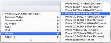 Click the pull down menu of “Format”, and then tap “iPhone” preset. There are multiple formats specialized for iPhone, you can select any one of them to meet your needs freely.